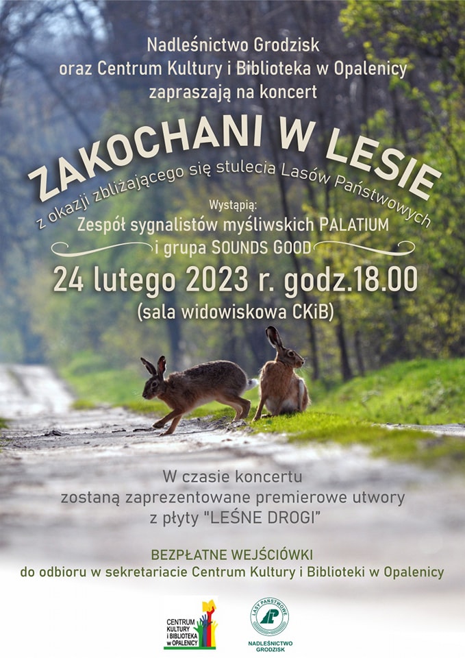 18 lutego w Opalenickim Centrum Kultury i Bibliotece odbył się zamknięty koncert „ZAKOCHANI W LESIE” mistrzowskiego duetu ZSM Palatium i zespołu Sounds Good, czyli syntezy muzyki myśliwskiej z rockową. Na koncercie wśród dobrze znanych z płyty „BRZMIENIE LASU”, zaprezentowano zupełnie nowe utwory  z zupełnie nowej płyty „LEŚNE DROGI”!