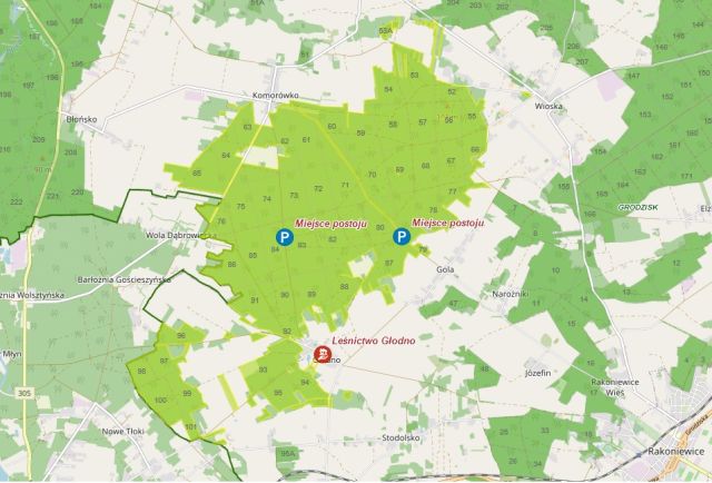 Nadleśnictwo Grodzisk przygotowało ofertę dla chętnych do biwakowania pod chmurką, bez żadnych udogodnień i turystycznej infrastruktury. Na ten cel wybraliśmy zwarty kompleks leśny GŁODNO o powierzchni około 1500 ha. Przeważają tu bory sosnowe dające dobre warunki do rozbicia namiotu, czy rozwieszenia hamaka. Kompleks otoczony jest polami, ale od strony południowo – zachodniej łączy się z obszarem „Zanocuj w lesie” w Nadleśnictwie Wolsztyn, przez co jego zasięg znacznie się zwiększa. W kompleksie Głodno usytuowane są dwa Miejsca Postoju Pojazdów w oddziałach 79 i 83, gdzie można pozostawić samochód i udać się w dalszą wędrówkę pieszo lub rowerem. Ze względu bardziej palny charakter drzewostanów, w których dominującym gatunkiem jest Sosna, na terenie kompleksu GŁODNO nie ma wyznaczonych miejsc palenia ogniska, a posługiwanie się otwartym ogniem jest zabronione.