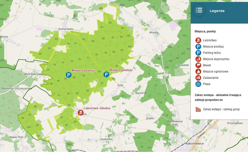 - mapą okresowego zakazu wstępu do lasu https://zakazywstepu.bdl.lasy.gov.pl/zakazy/ Przed wyjściem do lasu, sprawdź, czy obszar nie znajduje się na obszarze objętym zakazem