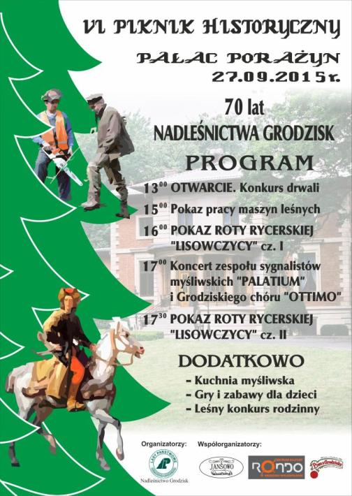27 września 2015 roku przy Pałacu w Porażynie odbył się VI Piknik historyczny, na którym Nadleśnictwo Grodzisk obchodziło również 70-lecie swojego istnienia. W związku z tym zaplanowano wiele atrakcji, nie tylko historycznych. I tak po otwarciu imprezy przez Nadleśniczego Andrzeja Ratajczaka, odbył się konkurs drwali. Wzięło w nich udział 10 pracowników z różnych zakładów usług leśnych, którzy rywalizowali w czterech konkurencjach. Po zaciętej i jak się okazało interesującej dla widzów rywalizacji, zwyciężył Krzysztof Florek.