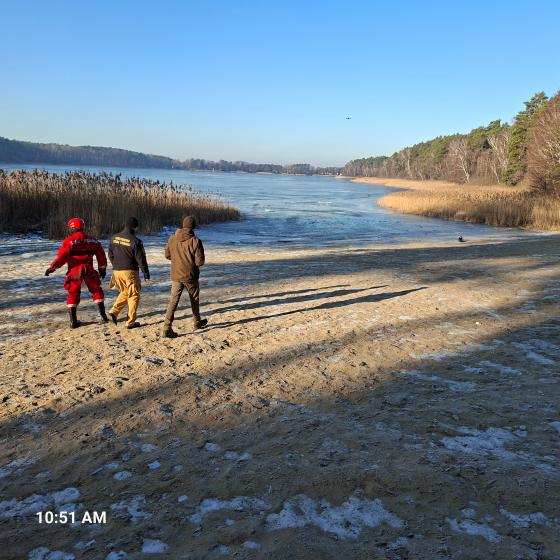 W pewnym momencie kierujący akcją zarządził przeszukanie tafli jeziora i brzegów, czy nie ma innych ofiar. I tu weszli do akcji strażnicy leśni Nadleśnictwa Grodzisk, którzy natychmiast uruchomili drona i w ciągu kilku minut zrobili to, na co kilkunastu ludzi potrzebowałoby co najmniej godziny. Jezioro i jego brzegi zostały szybko przeszukane przy pomocy kamery zwykłej w podczerwieni.