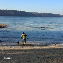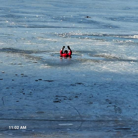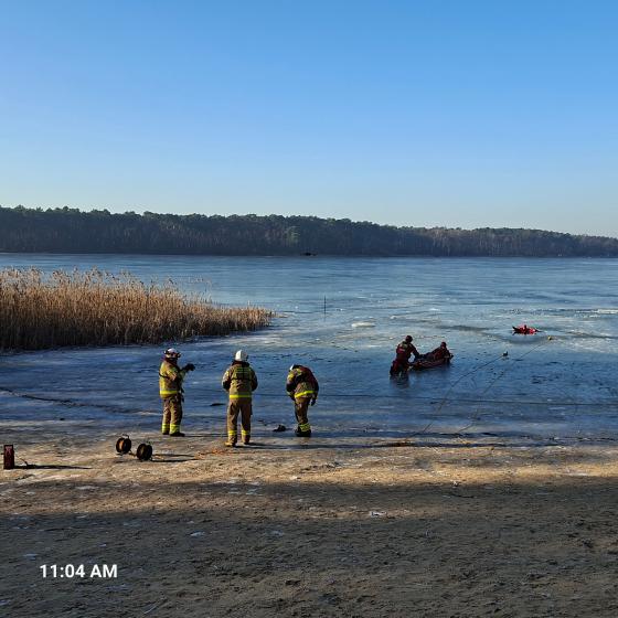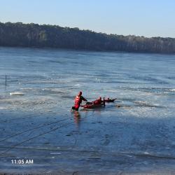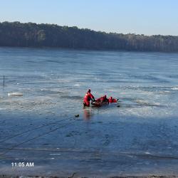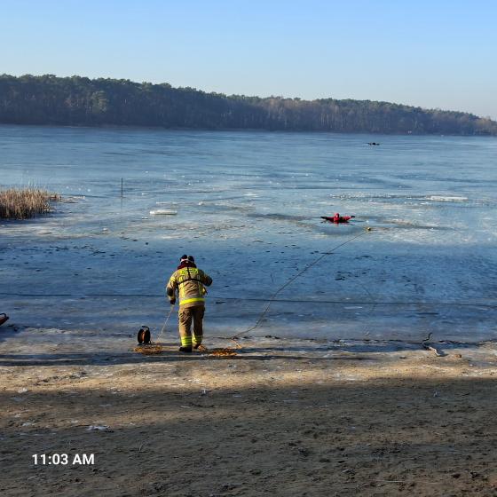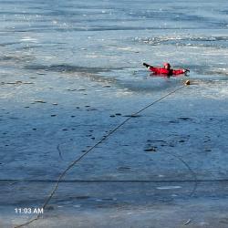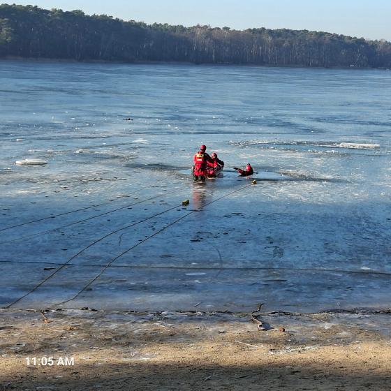 STRAŻACY ĆWICZĄ RATOWNICTWO LODOWE W KUŹNICY ZBĄSKIEJ.