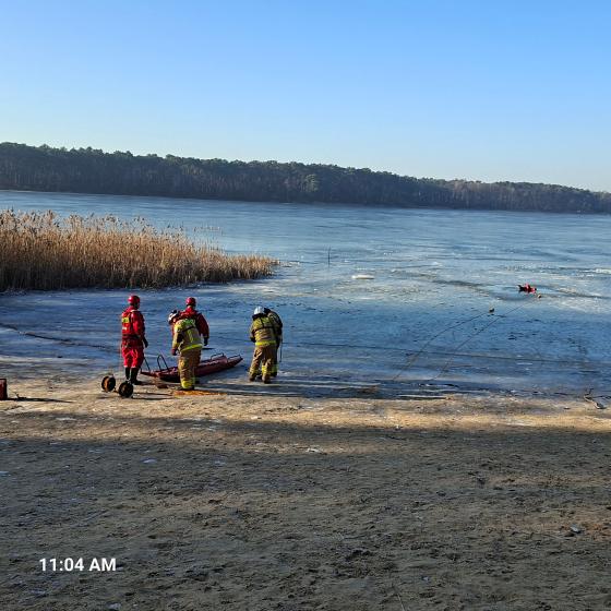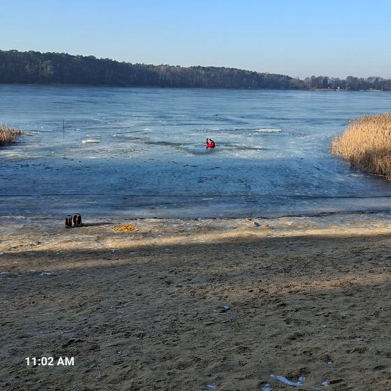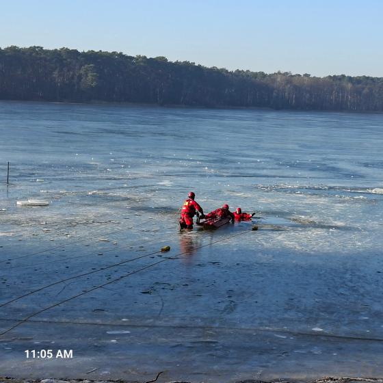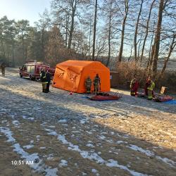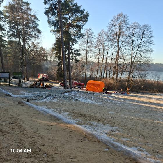 W mroźny poranek 19 stycznia strażacy z KP PSP w Grodzisku Wlkp. wraz druhami z OSP Rakoniewice, Rostarzewo i Jabłonna rozpoczęli ćwiczenia ratownictwa lodowego na tafli jeziora Kuźnickiego.